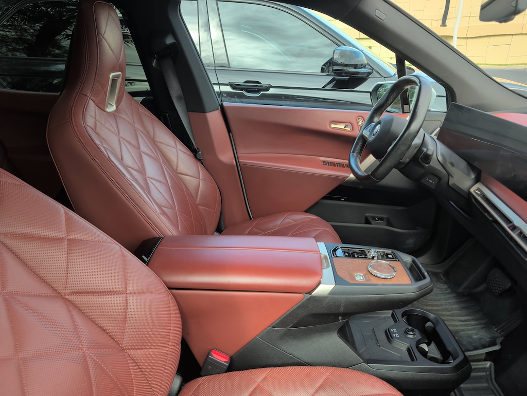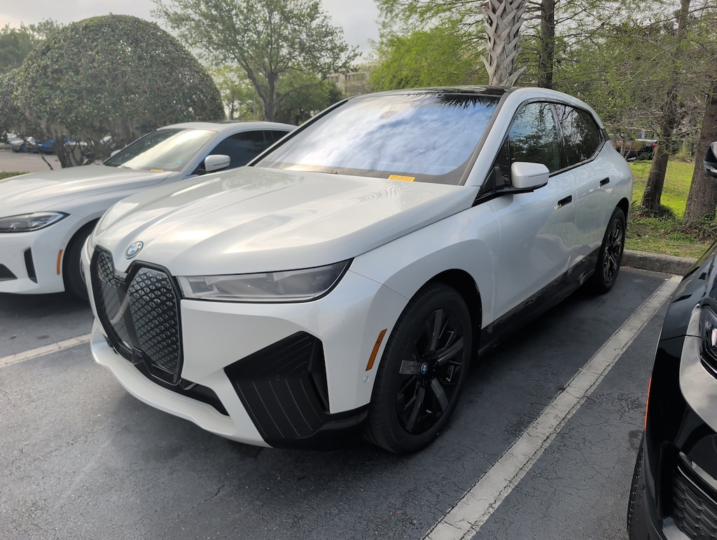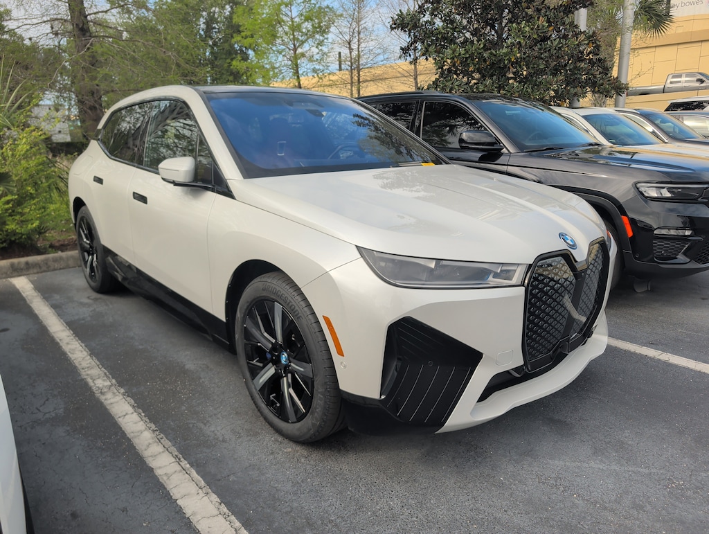 Navigation, Sunroof, Panoramic Roof, All Wheel Drive, Power Liftgate, Rear Air, Satellite Radio, iPod/MP3 Input, Onboard Communications System, Chrome Wheels, Keyless Start, Dual Zone A/C, Apple CarPlay®, Hands-Free Liftgate, Cross-Traffic Alert Rear Spoiler, MP3 Player, Privacy Glass, Remote Trunk Release, Keyless Entry. BMW xDrive50 with Mineral White Metallic exterior and Castanea Chestnut interior features a Electric Motor.